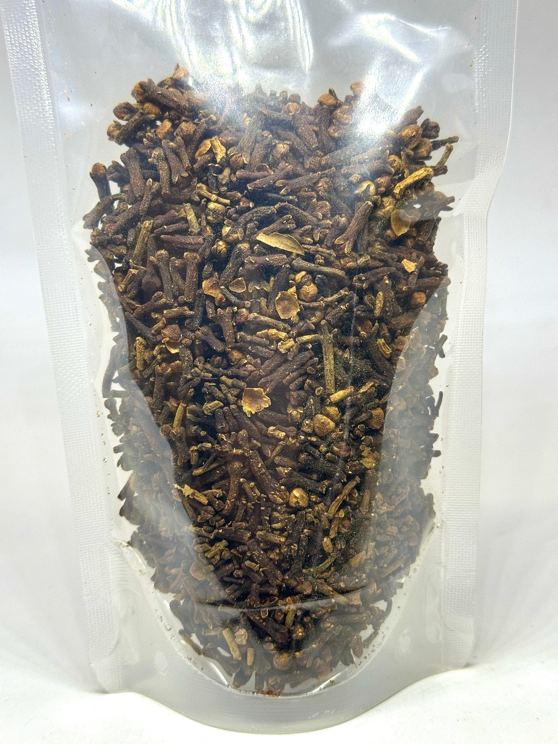 Description : Les clous de girofle entiers sont de petits bourgeons floraux séchés, ayant une forme semblable à un clou, d'où leur nom. Ils sont d'un brun foncé à noirâtre et ont une texture dure. Ces clous dégagent un arôme chaud, épicé et légèrement sucré, avec des notes boisées.