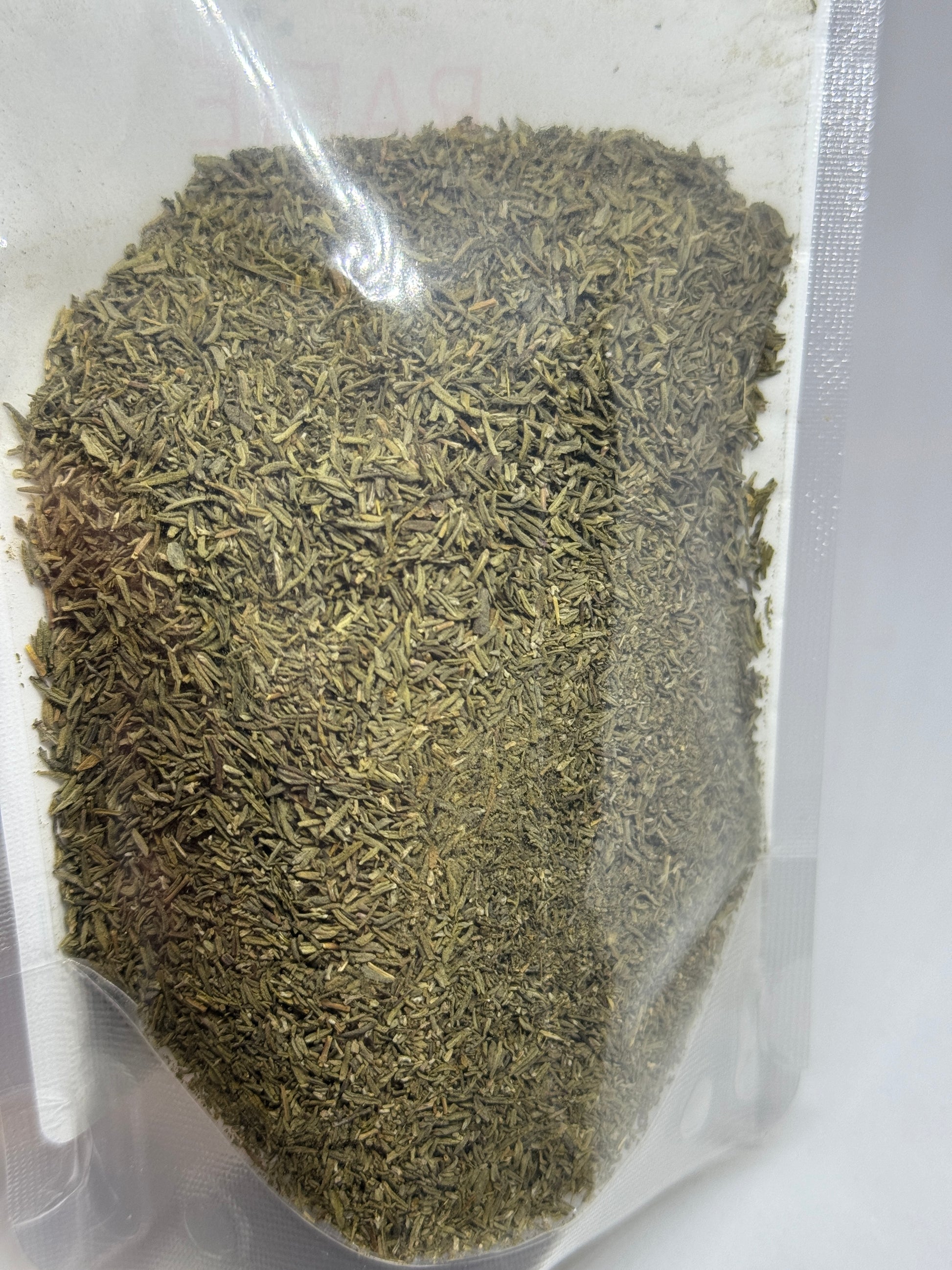 Description : Le thym est une plante herbacée vivace aromatique avec de petites feuilles vertes et ovales, et de petites fleurs blanches, mauves ou roses. Il est célèbre pour son arôme distinctif, qui est à la fois terreux, légèrement floral et légèrement poivré.